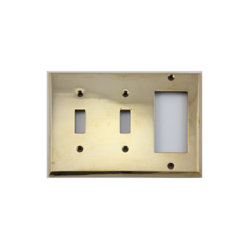 Unlacquered Polished Brass 3 Gang Combination Switch Plate - 2 Toggle Light Switch Openings 1 GFI Opening