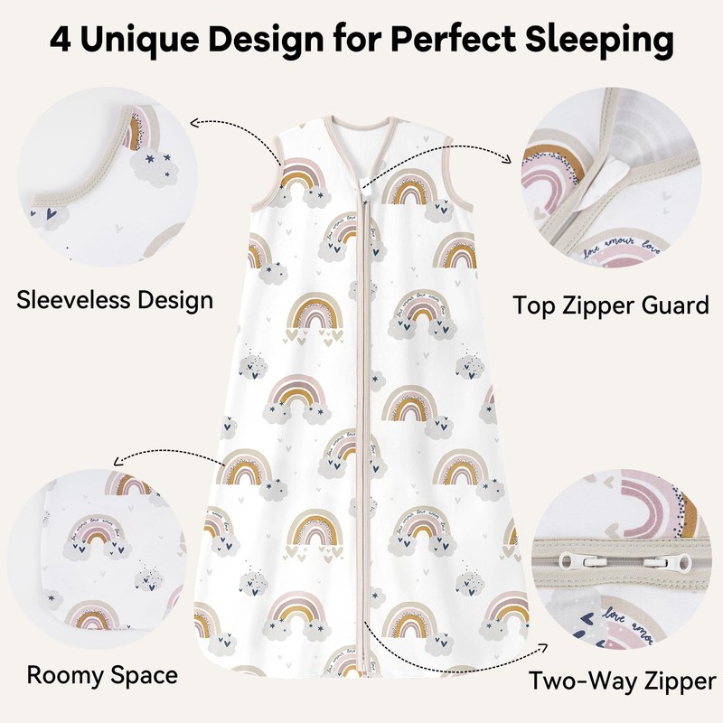 - EASY DIAPERING-2 way zipper runs from the top to the bottom, making the lightweight sleep sack much convenient to change diapers without any interruption, especially during midnight. Equipped with zippe guard prevent rubbing on your baby's sensitive skin and protects baby's chin. Tog rating 0.5, making it perfect for nursery room temperature 75°F above.