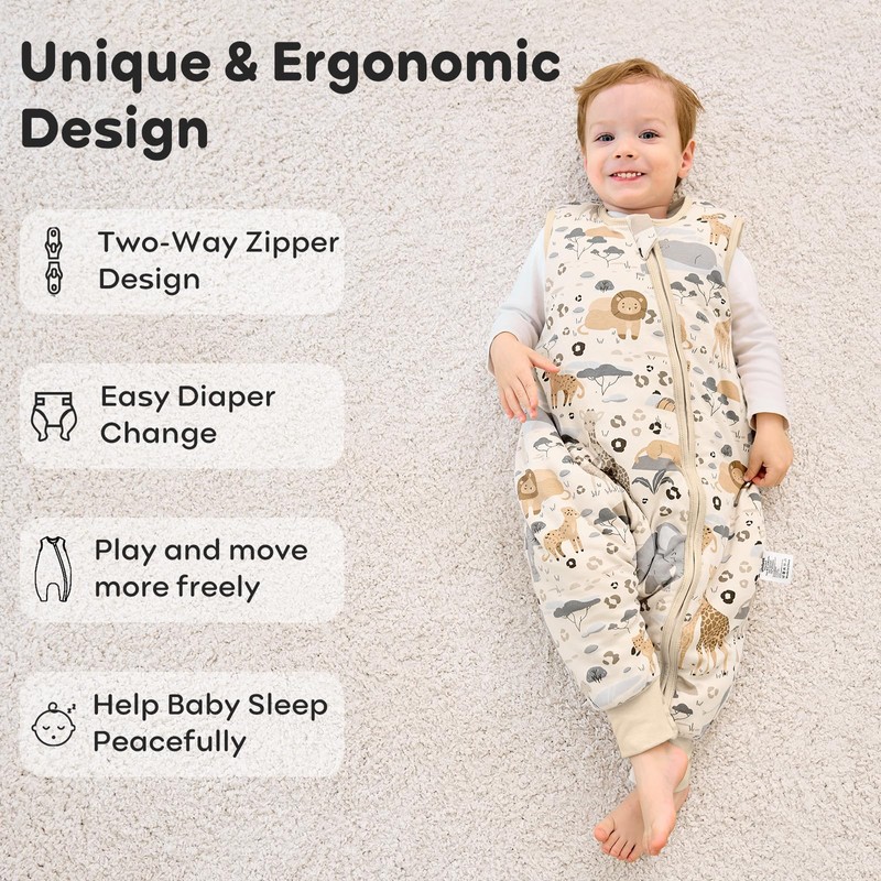- Smooth two-way zip: the bidi zip makes it easy to put on and take off, the zip design at the foot end makes it easy to change the nappy without disturbing the baby's sleep. The high-quality zip is smooth and does not jam even after repeated use. The zip protection of the baby sleeping bag protects your baby's chin from scratches.