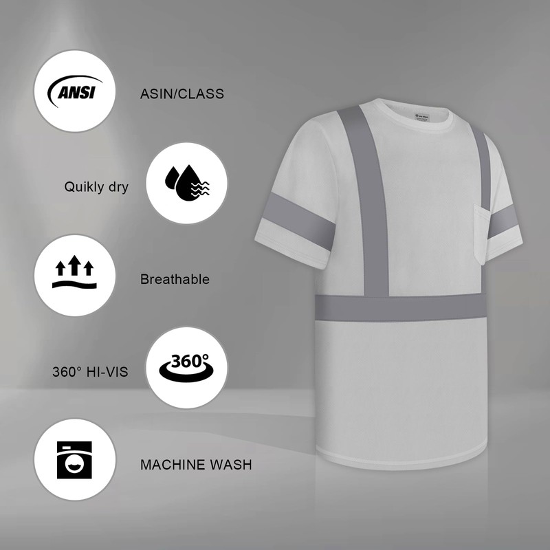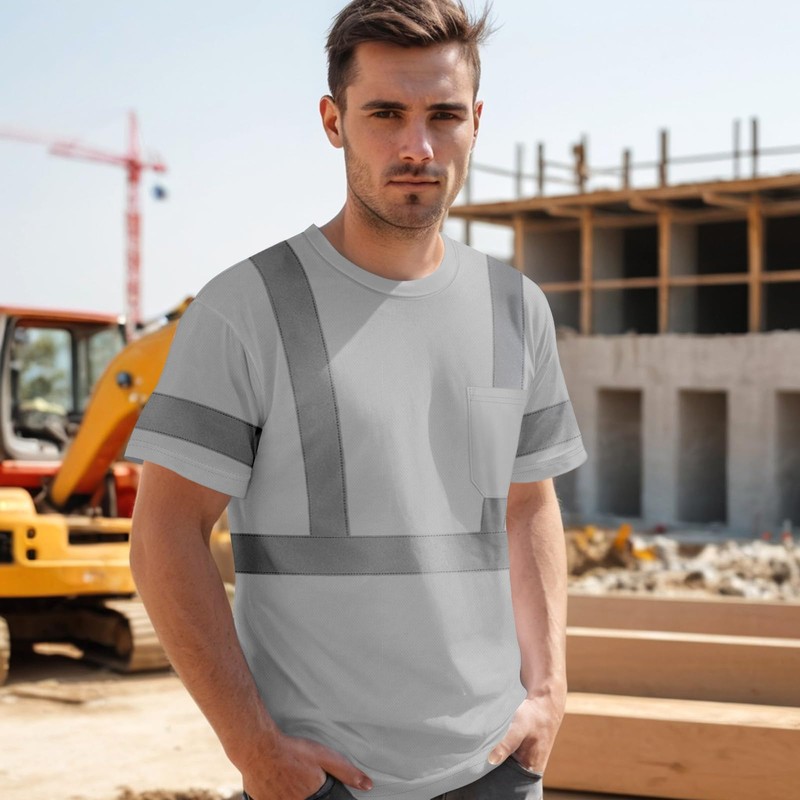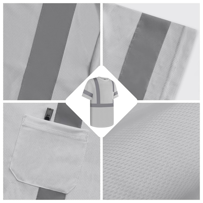 Uno Mejor Hi Vis Shirts for Men Class 3 High Visibility Shirts with Short Sleeves, Reflective Safety Shirts for Men Women, ConstrUCRtion Shirts, Durable & Breathable, UCR-Light Grey XXL