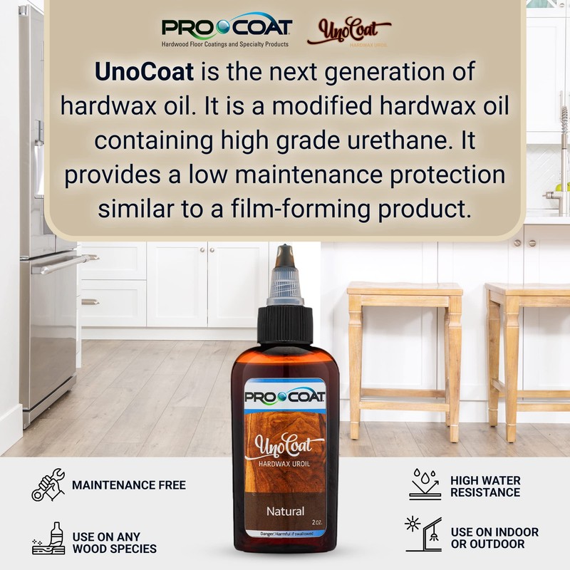 - ONE COAT APPLICATION: UnoCoat, a urethane-modified hard wax oil, is fast-drying and waterproof coloring and finishing system. Offering ultimate color penetration, one application may be enough to achieve natural wood with no overlaps or starting applicator marks.