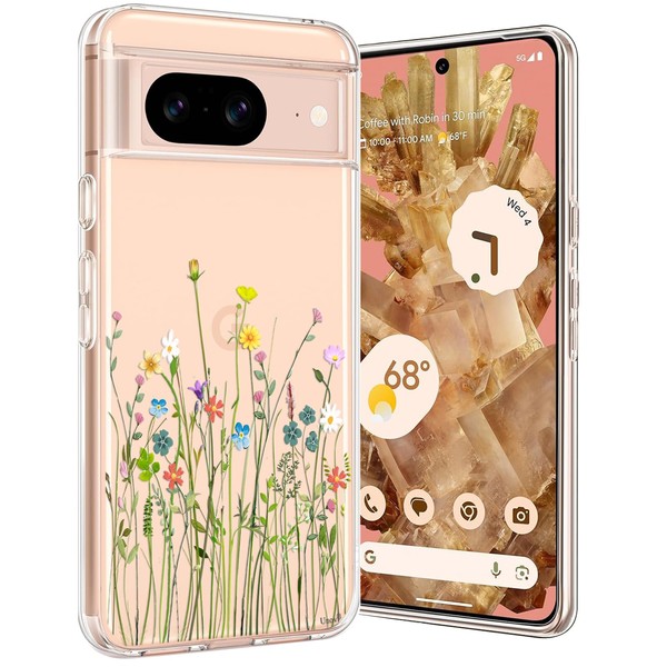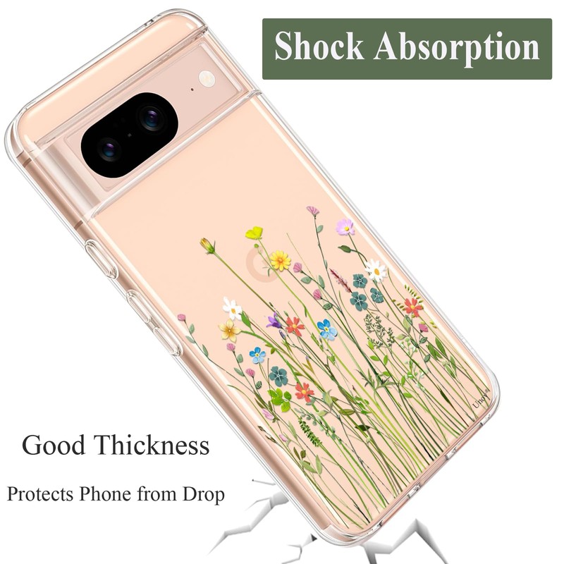 Unov Case Compatible with Pixel 8 Case Clear with Design Soft TPU Shock Absorption Slim Embossed Pattern Protective Back Cover for Pixel 8 (Flower Bouquet)