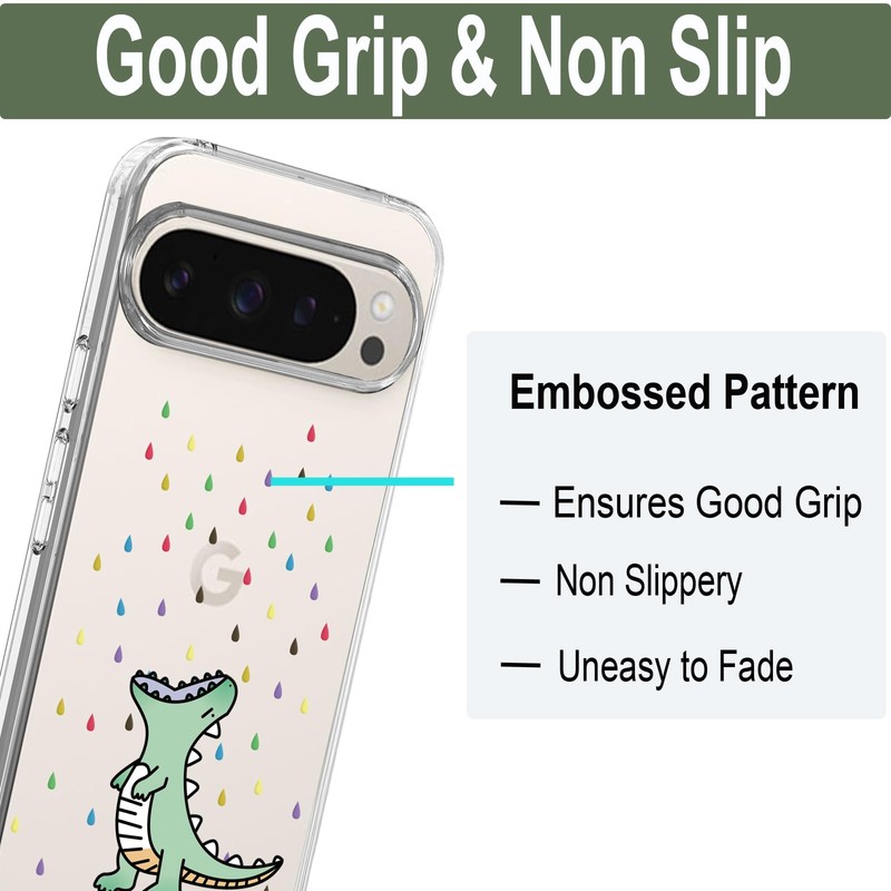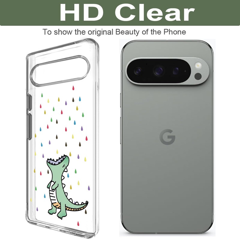 Unov Case Compatible with Pixel 9 Pro XL Case Clear with Design Soft TPU Shock Absorption Slim Embossed Pattern Protective Back Cover (Rainbow Dinosaur)