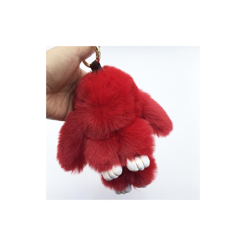 Unpafcxddyig Bunny Keychain Cute Rabbit artificial fur Keychain Car Handbag Keyring,red
