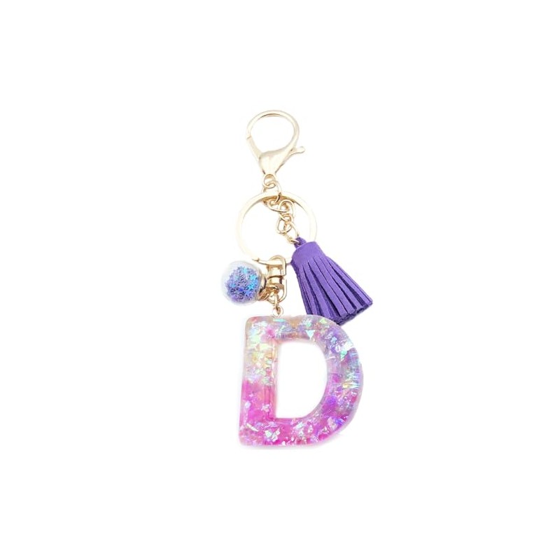 Unpafcxddyig Initial Alphabet Pendant Letter Keychain Purse Charms Colorful Pink with Tassel for Women,D