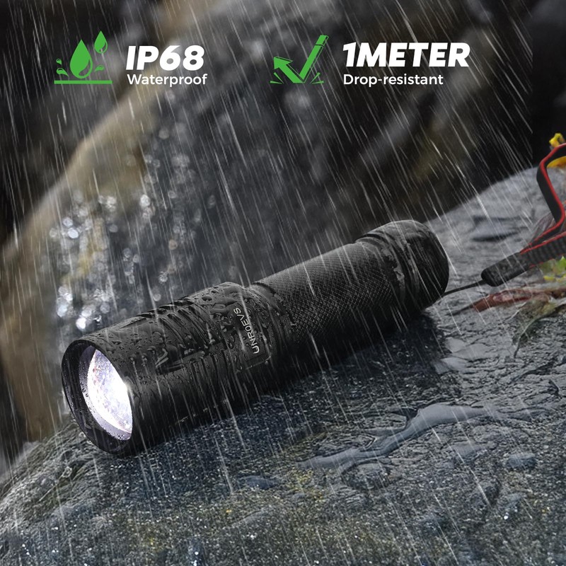 UNROEVS Rechargeable Flashlights High Lumens,1500 Lumens Powerful Tactical Flash Light,Zoomable Linternas with Memory Function,5 Modes,High Powered Small Flashlight for Camping,Emergency.