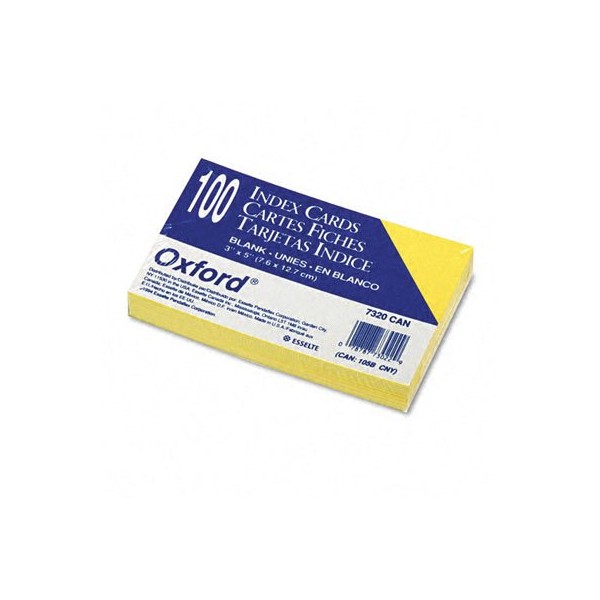 Unruled Index Cards 3 x 5 Canary 100/Pack