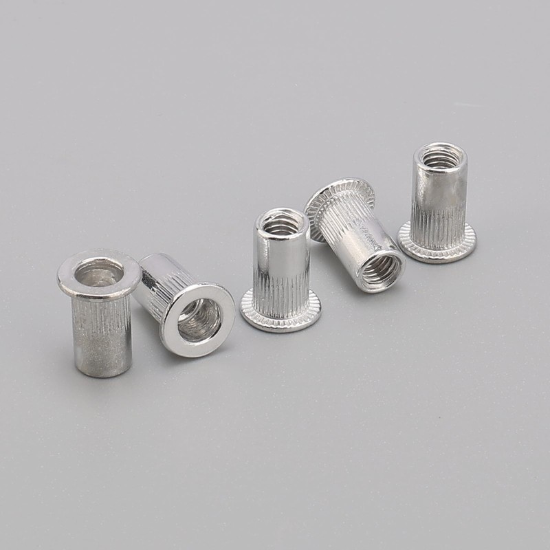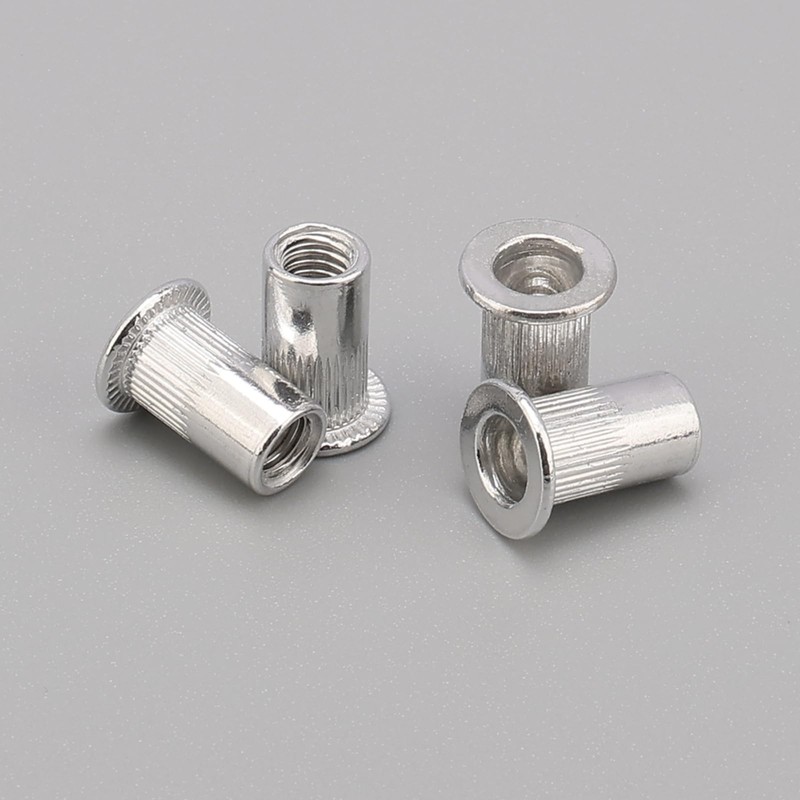 Unxuey M4 Rivet Nuts Aluminium Alloy Knurled Flat Head Rivet Nuts Thread Insert Rivet Nut Pack of 100