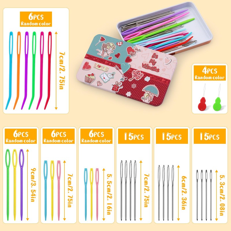 - Durable Needles: 3 different types needles both made of this sturdy and durable material. Whether it is plastic or stainless steel,smooth edges make it easier to stitch, they are painted with vivid color,which let you enjoy needlework projects