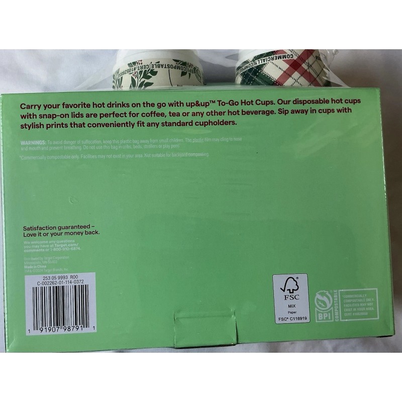 Up & Up To Go Hot Cups With Snap-On Lids Double Walled Insulation 8 - 16oz Cups
