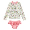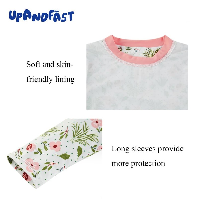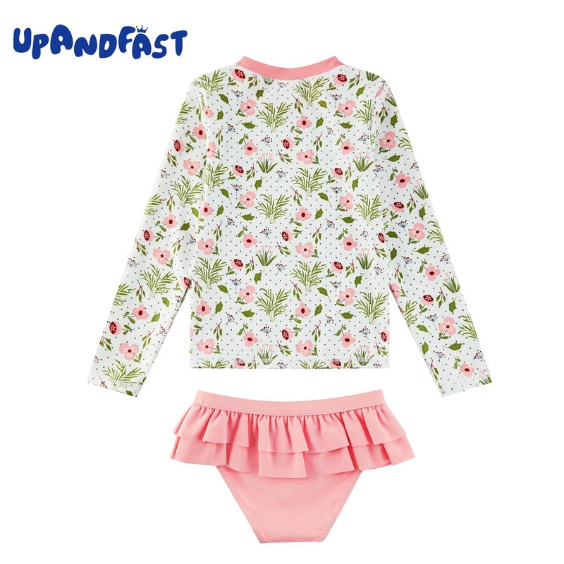 upandfast Toddler Girl's Long Sleeve Rashguard UPF 50+ Two Piece Swim Set(4T, Pink Flower)