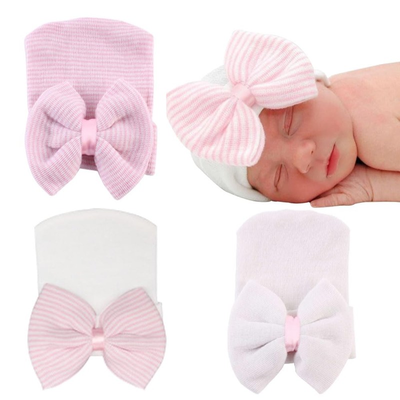 upeilxd Newborn Baby Hat Infant Caps Baby Boy Girl Toddler Hospital Hats Bow Double Layer Knit Beanie Cap for 0-3 Months (3 Pcs Bow Hats)