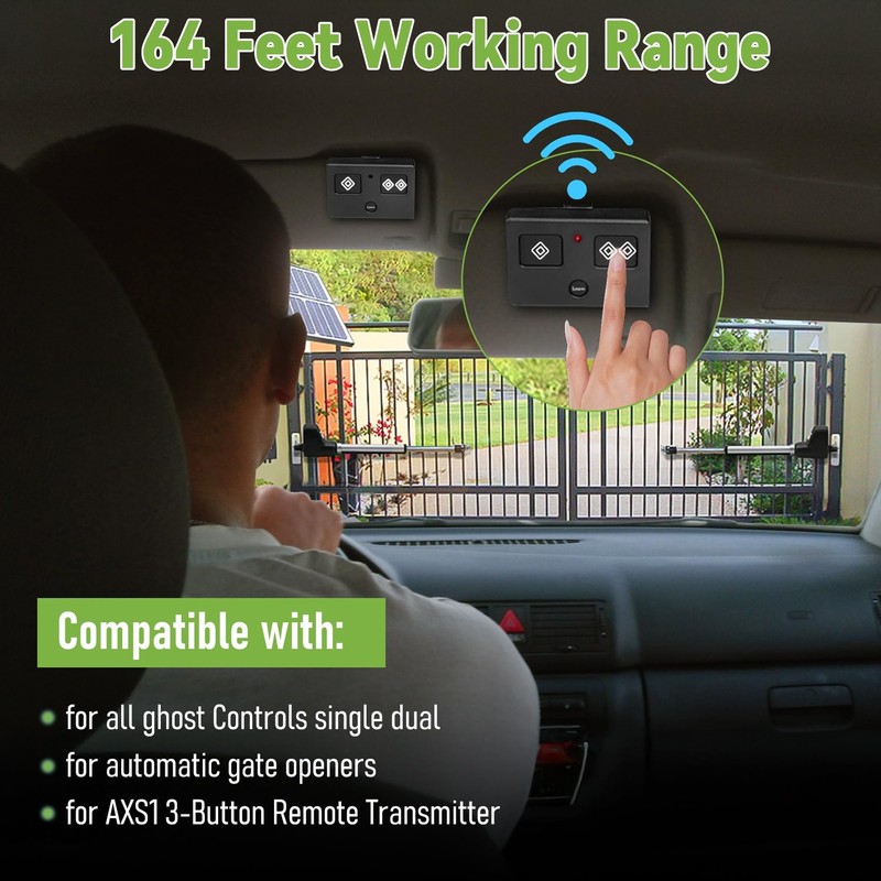• 【Broad Compatibility:】 Compatible with all ghost Controls single and dual automatic gate openers. The AXS1 Remote Transmitter can replace for the ghost Controls AXS1 3-Button Remote Transmitter.