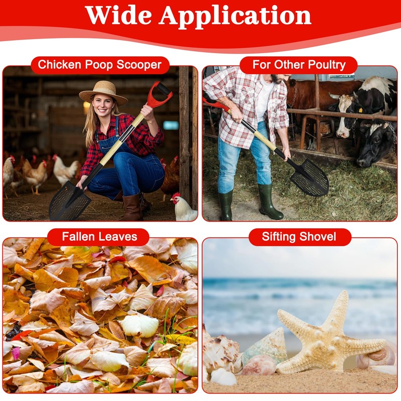 - Versatile Use for Multiple Environments - This sifting shovel is the perfect tool for various tasks, including cleaning beaches, barns, gardens, and livestock sheds. Whether you're dealing with farm animal droppings in sheep pens, chicken coops, or cleaning sandboxes, this shovel is versatile enough to handle all your sifting and cleaning needs. It's a must-have for treasure hunting, beachcombing, or even rock sifting!