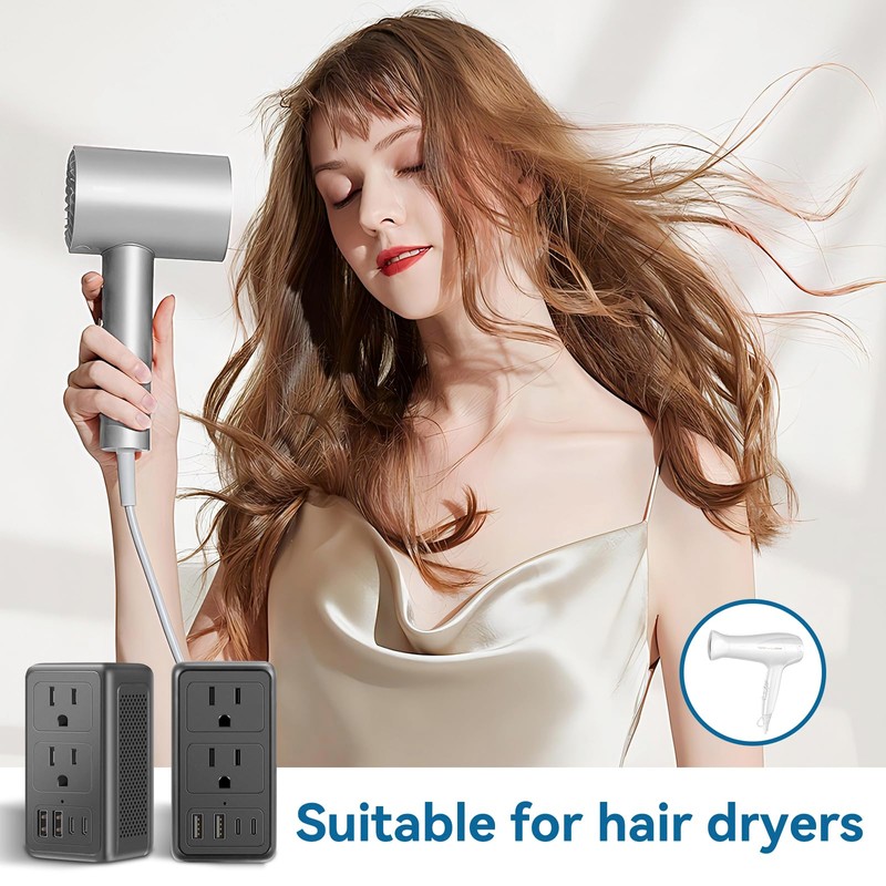 - 220V to 110V Converter: The power converter adapter combo mode reduces the voltage from 220-250V to 110-125V, compatible with 25W-1000W power devices such as hair dryers, phones, cameras, watches, laptops, and other electronic products. (Note: The 220v to 110v conversion plug is not suitable for the following equipment: electric toothbrushes, electric shavers, electric irons, hair straighteners, hair curling, curling iron, etc.)