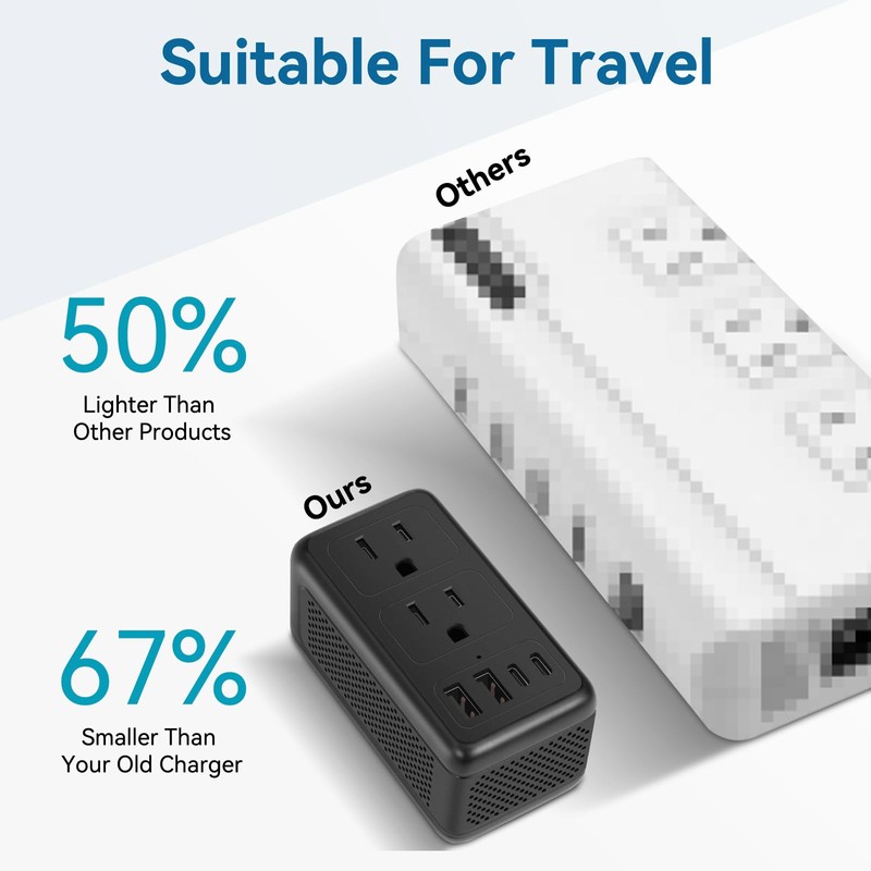 - 6 in 1 Travel Adapter Worldwide: This power converter adapter combo is equipped with 2 USB-C ports, 2 USB-A ports and 2 AC outlet, charge up to 6 devices at a time , meet various charging demands for your journey. You can take it charging anywhere, such as airports, hotels, dorm room.