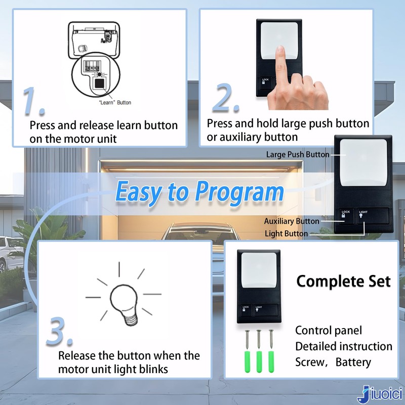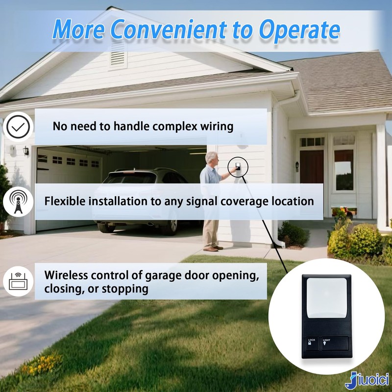 - ✅[More Convenient to Operate] No need to handle complex wiring, flexible installation in any signal covered area of the home; Simply press a button to fully wirelessly control the garage door, including opening, closing, or stopping.