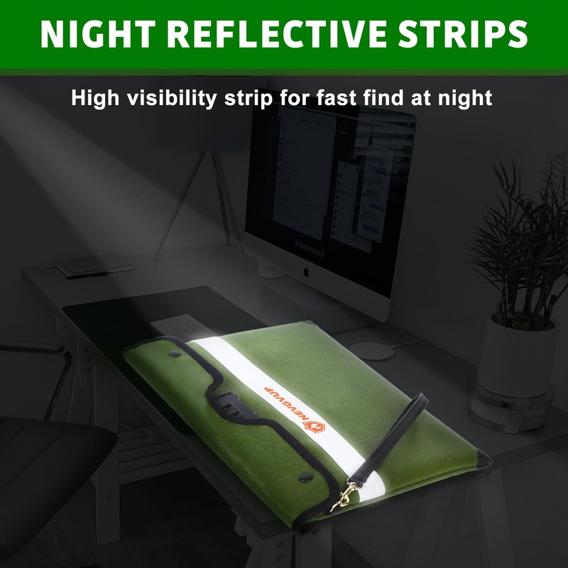 - 360° FIREPROOF DESIGN: This NEVGVUP fireproof document bag mainly adopt a 9-layer function material structure of fire protection and heat insulated. The locking fireproof money bag for cash is sewn with flame-retardant thread and fireproof hemming, to prevent fire from damaging the fireproof bag from the edge, closure by velcro flap, plus two fireproof metal snaps, so that its zipper completely prevent fire, which make the fire proof money bag for cash 360° fire resistant