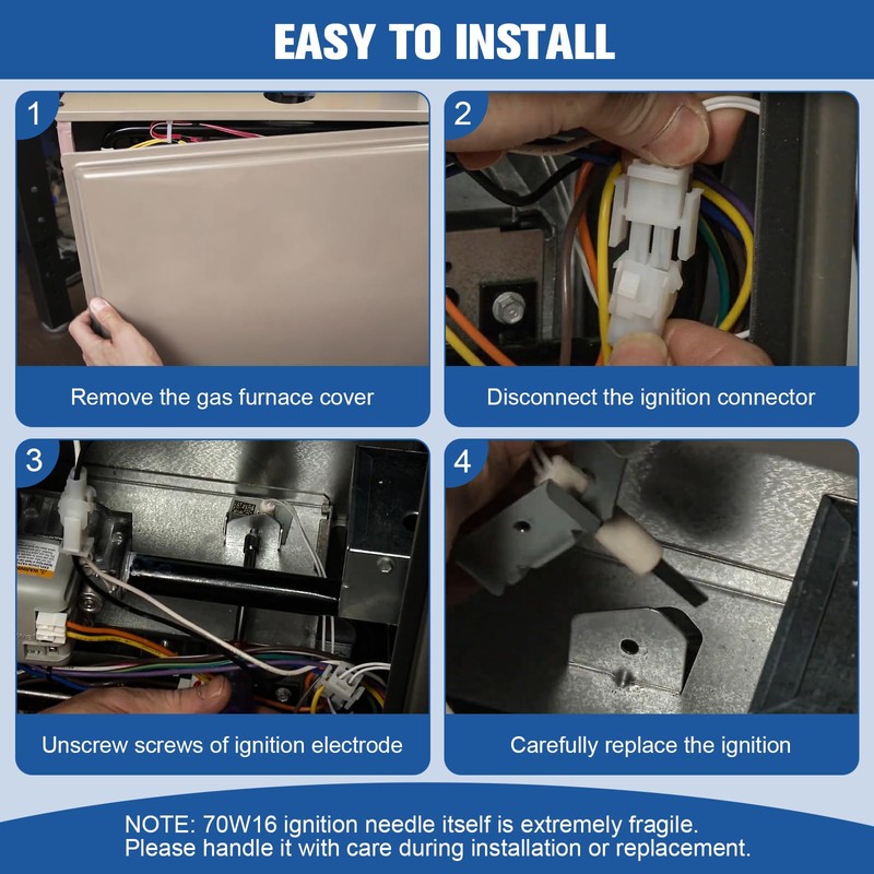 - 【Premium Material】70W16 furnace heater igniter is made of high-quality silicon nitride. Each unit undergoes strict inspection, with an average ignition count of 100,000 times. Upgraded 70W16 ignition pin ensures faster ignition, along with enhanced safety and reliability