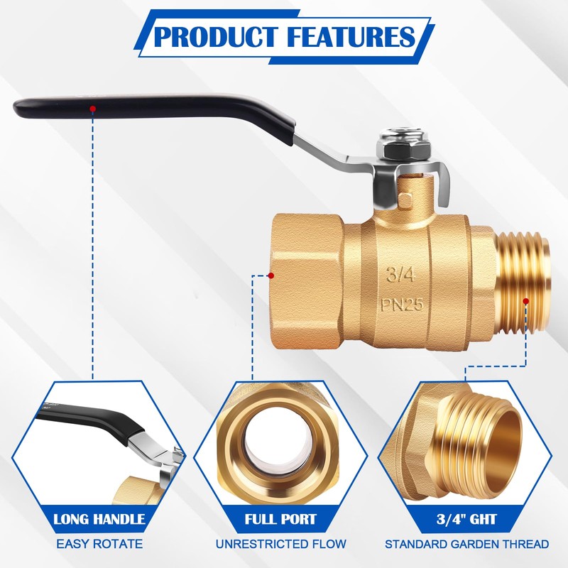 - 【Product Standard】The Boltigen garden hose control valve is designed: 3/4' GHT male thread to 3/4' GHT female thread; which is compatible with almost all USA standard garden hoses & faucet & nozzle & garden connector, etc. Not Fit NPT thread equipment.