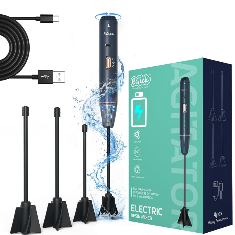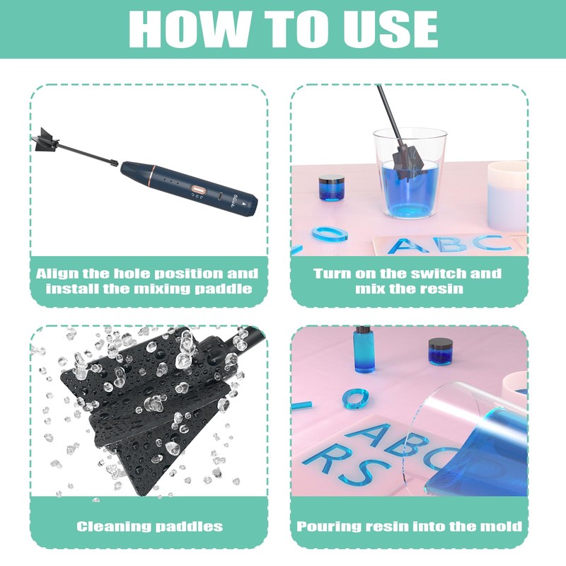 - 【What You Will Get】1x Rechargeable Electric Resin Mixer, 4 epoxy resin stirring paddles (2*small 2*large), 1x USB Type-C Charging Cable, 1x Instruction Manual.