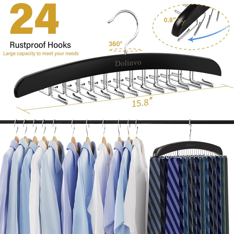 - Premium wood Tie Organizer For Closet - The high quality finish of the tie hanger wood will not disappoint. The smooth finish to the dark walnut wood adds an added elegance to show off your tie collection.