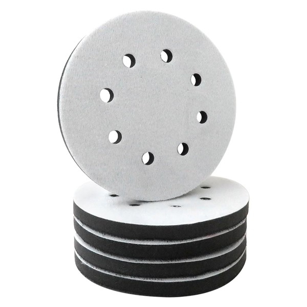 Upgraded Version 5x Sponge Sander Pads, 5 inch 8 Holes Soft Density Sanding Discs Hook and Loop Attachment Buffer Backing Pads