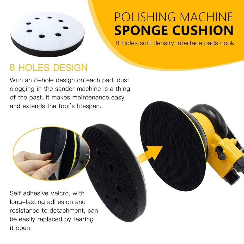- Features: With an 8-hole design on each pad, d-ust clogging in the sander machine is a thing of the past, This not only makes maintenance a breeze but also significantly extends the tool's lifespan
