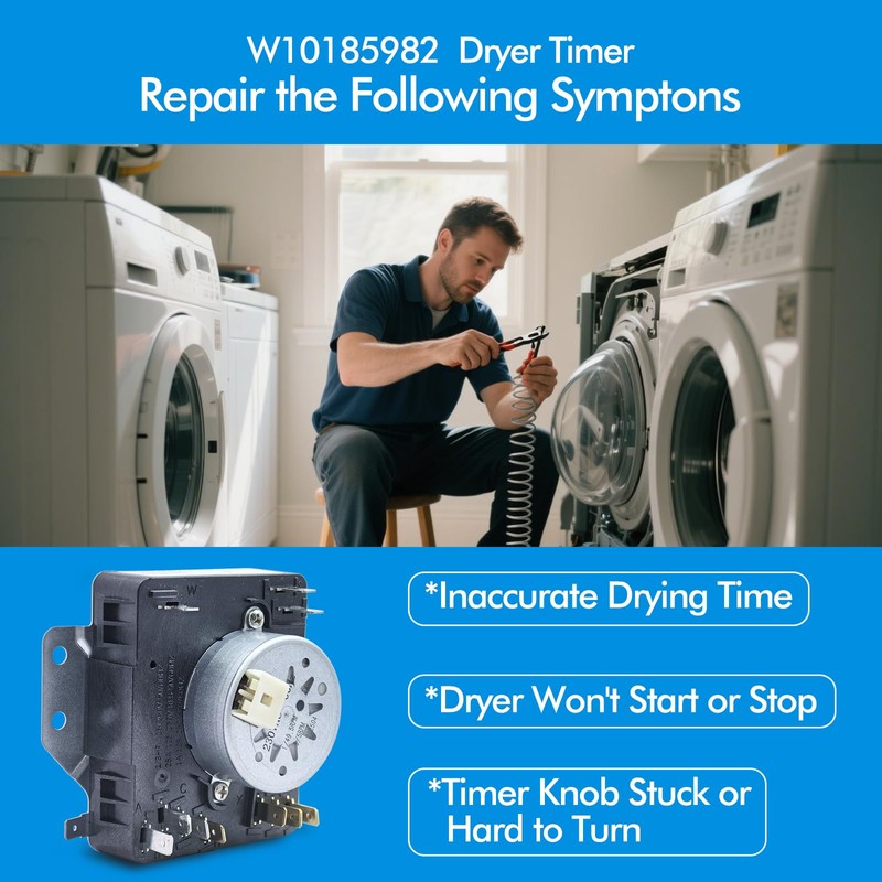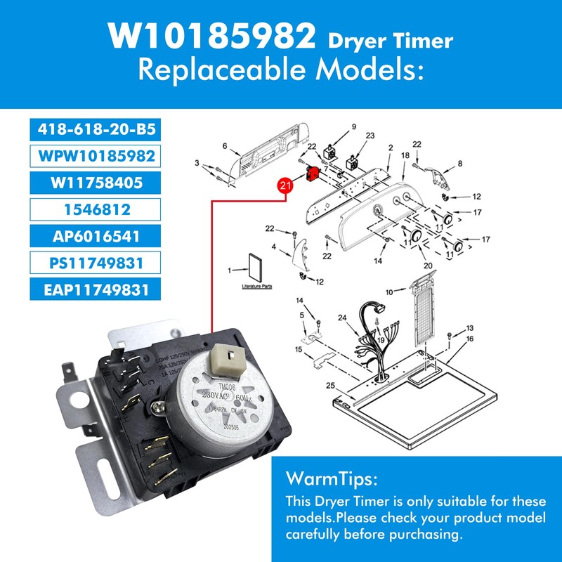 - 【Widely Compatible for Whirlpool】W10185982 Timer Compatible with Whirlpool dryer: 3DWGD4815FW1 Dryer Timer, whirlpool 7mwed1800em0 dryer timer, wed4800xq0 timer, wed4810bq0 dryer timer, WED4810EW0 Dryer Timer, WED4815EW0 timer, WED4916FW0 dryer timer, WED4950HW0 timer, WED4995EW0 dryer timer, WED4995EW2 dryer timer, WED5100VQ1 timer, WED5200VQ1 timer, WED5790VQ1 dryer timer, YWED4800BQ1 dryer timer, YWED4815EW1 dryer timer, YWED4815EW2 dryer timer, 1CWED5200VQ1, etc.