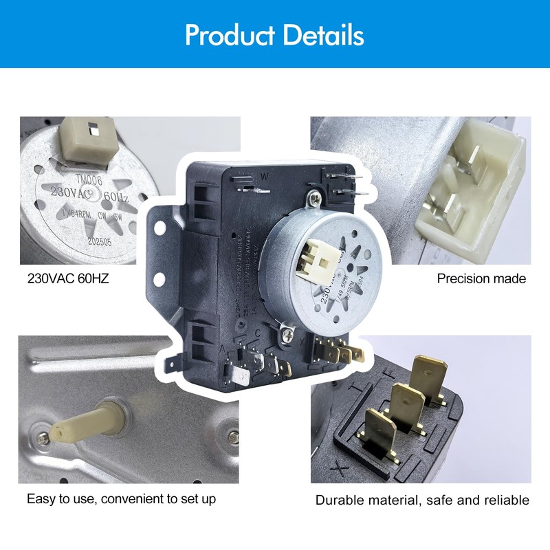 - 【Material functional characteristics】W10185982 dryer timer component can be used in combination with a washing machine to accelerate dehumidification speed, improve clothing comfort, and prevent damage caused by overheating. The timer button of W10185982 dryer is usually made of moisture-proof and rust proof materials to minimize the impact of water spray (and avoid internal rust or insulation failure), thereby extending its service life.