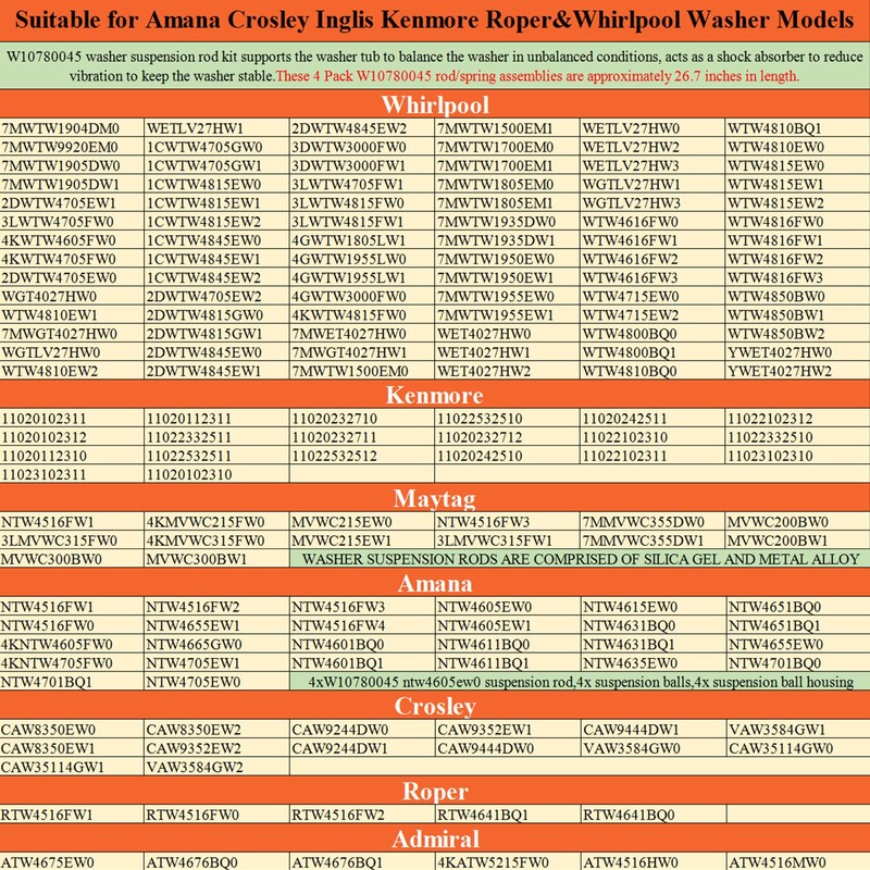 - ใ๐ฆ๐จ๐๐ง๐๐๐๐ ๐๐ข๐ฅ ๐ช๐ต๐ถ๐ฟ๐น๐ฝ๐ผ๐ผ๐น ๐๐ฒ๐ป๐บ๐ผ๐ฟ๐ฒ ๐๐บ๐ฎ๐ป๐ฎ ๐ช๐ฎ๐๐ต๐ฒ๐ฟ ๐ฝ๐ฎ๐ฟ๐๐ใ:W10780045 Suspension Rod Kit replaces for Amana,Crosley,Inglis,Kenmore,Roper and Whirlpool washer suspension rod kit and repalces Part 4282746, AP5971396, EAP11703288, PS11703288, W10537442, W10537443, W10622030, W10645652, W10748953, W10748955, W10780045VP, W10780053, W10821951, W10821956, mvwc200bwo, wtw4816fw2, wtw4815ew1, 2dwtw4705ew0, atw4676bq0, wtw4800bq1, 11023102310, 11022532511, 11020022012, 11020232711, ntw4605ewo, ntw4516fw1, ntw4516fw2, ntw4611bq1 and more.
