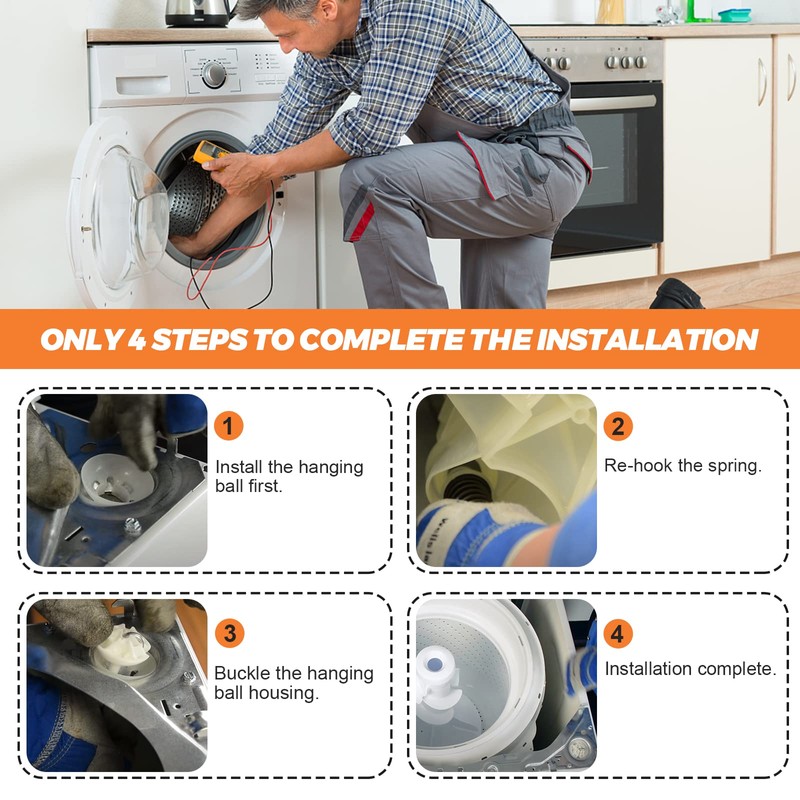 - ใ๐๐๐ฆ๐ฌ ๐ง๐ข ๐๐ก๐ฆ๐ง๐๐๐ใ:Wear gloves before repair and disconnect the power and water supply of the washer. If your washer has the following situations during use,you may need to replace the W10780045 Suspension Rod Kit:โ Immediately upon starting the spin cycle, the washer was unbalanced and "clunking" loudly.โกThe washing machine vibrates or shakes seriously.The washer roper washing machine suspension rods damper keeps the washing machine balanced, so that the washing machine can return to normal use.
