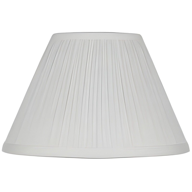 Add a touch of style to any room in your home with this classic pleated white shantung lampshade. The rust-resistant brass uno fitter is threaded for easy installation. The shade measures 6 inches across the top, 12 inches across the bottom, and has an 8 inch slant height.