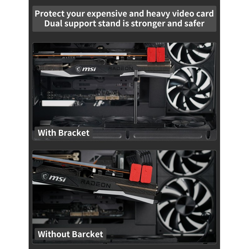 - 【Dual-Brace Stability】Reinforced arm design prevents GPU sag, offering robust support for heavy graphics cards (adjustable up to 128mm/5.04in height).