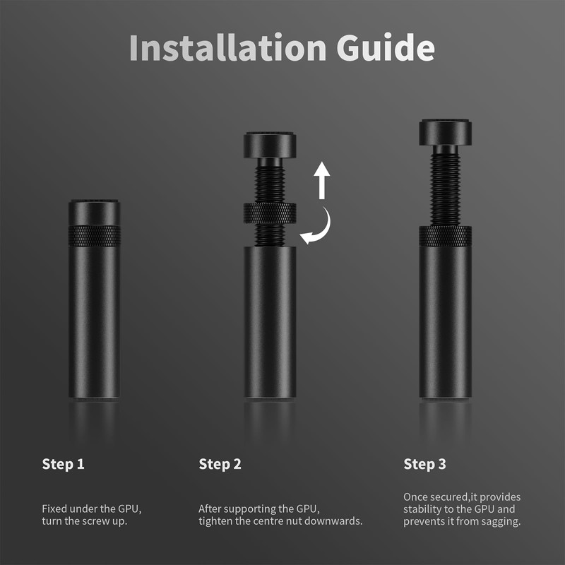 - Hassle-Free Adjustments: Say goodbye to tedious installation processes with the tool-free telescopic screw design that allows you to easily adjust the height of your GPU support. Compatible with popular graphics cards including GTX, RTX, and Radeon.