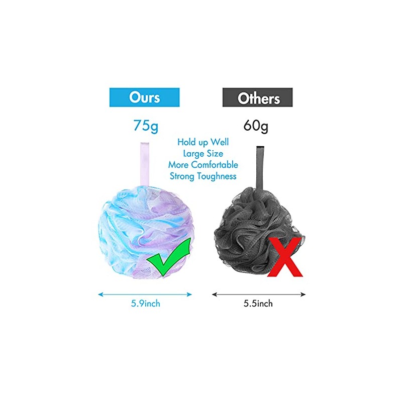 - Suitable Size - Ideal 75g size, approx 5.9 inches, each shower sponge is suitable for most adults.They are the ideal size for leaving you with softer, more youthful, silky smooth skin.