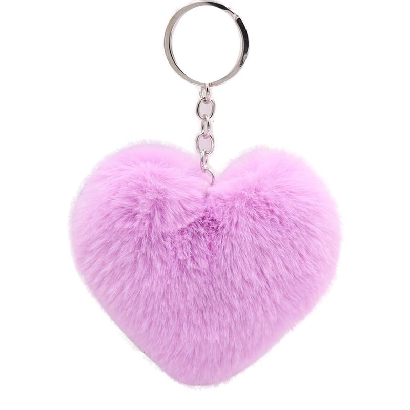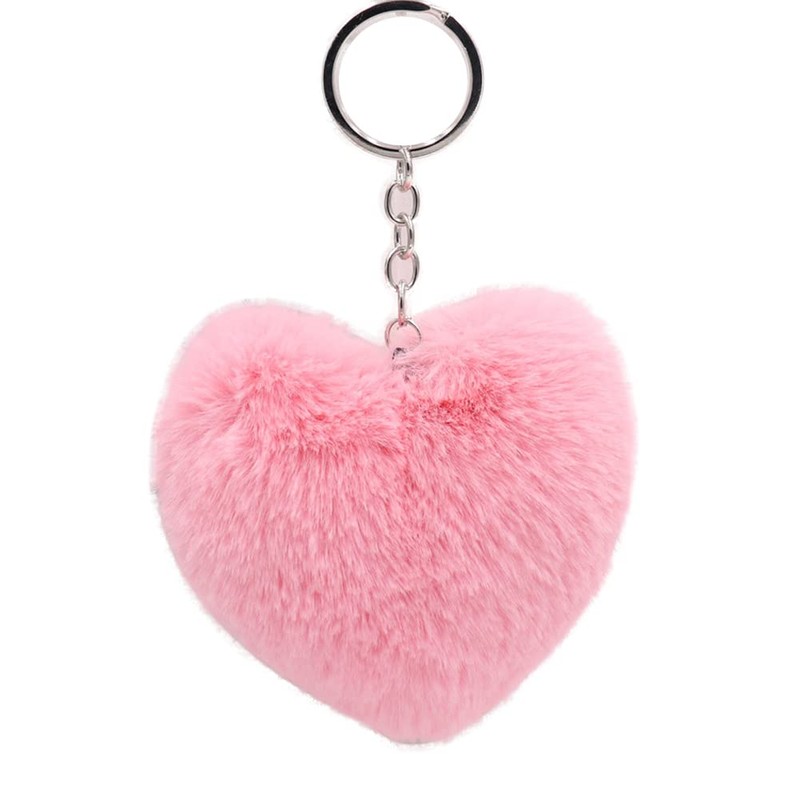 Uposao Heart-shaped plush key ring, soft hair ball, fluffy pompoms, soft plush key ring, pendant accessory for girls and women