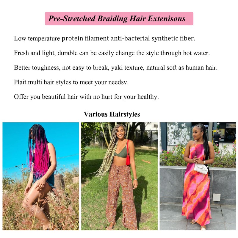- ❤️ More Pre Sectioned Braiding Hair Hairstyles: Plant Based Spetra Braiding Hair Pre Stretched is Suitable for Classic Box Braids, Knotless Box Braids, Goddness Box Braids. So You Can Diy Your Own Hairstyles As You Like