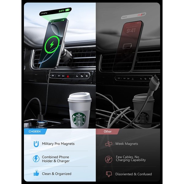 - All-in-One Charging & Mounting: This dual-purpose magsafe car mount keeps your phone charged and organized. Simplify your setup and keep your space clutter-free with seamless integration.