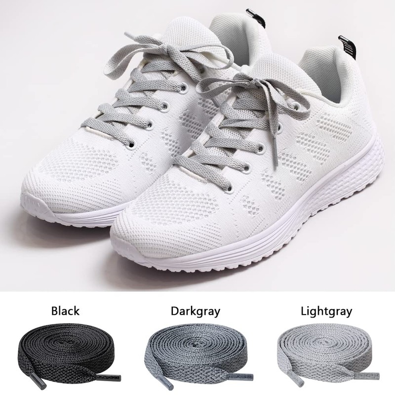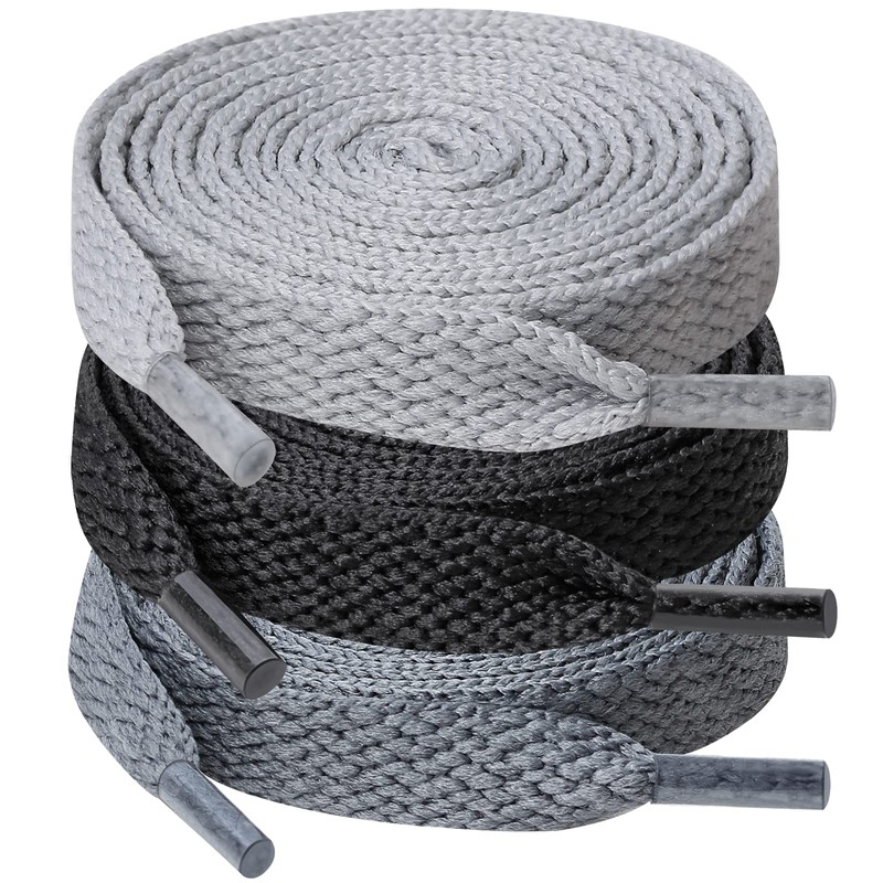 - [Package]: 3 pairs 30"/76cm long, 5/16"(8mm) wide flat shoelacesPackage, mixed color with black, light grey, dark gray