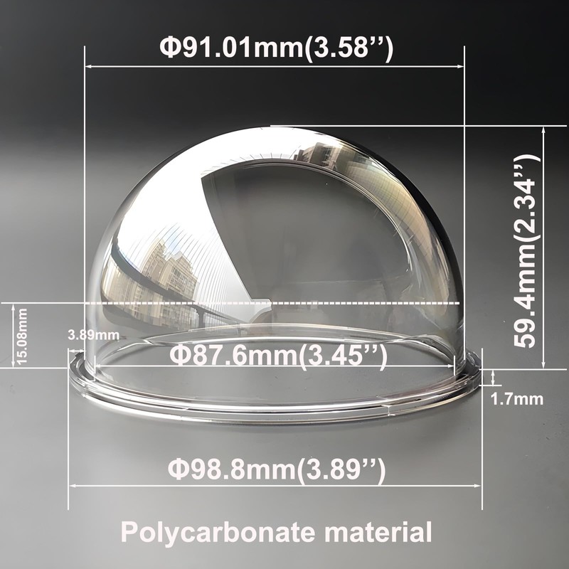 This is a hemispherical lid made of high-quality polycarbonate, similar to a glass dome, but with shatter resistant and scratch resistant, and higher hardness. The mold for this optical dome cover meets high-precision optical standards and is produced in a dust-free injection molding workshop with excellent optical performance. It’s suitable for external use and beautifully made. Dome plastic cover can be used in many applications from CCTV camera dome replacement, drone lens protection, skylight, food cover, product displays, dog & cat bubble windows, home decoration, crafts, underwater devices and more.