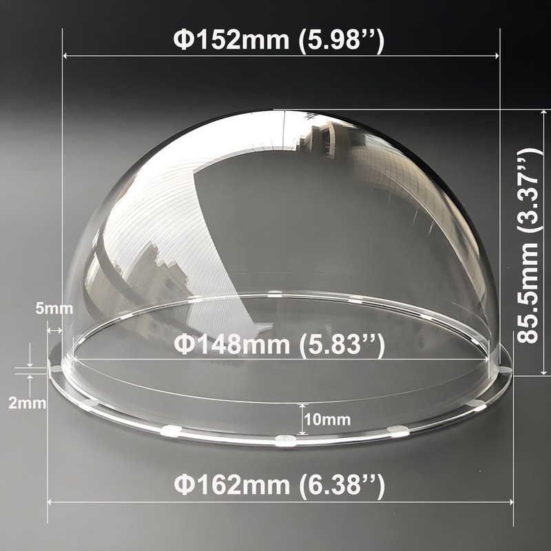 UQISOVI 6-Inch Acrylic HD Clear Glass Protective Dome Cover Transparent Crystal Dome Replacement Lens Cap Surveillance Security Camera Dome Cover, 152mm Outer Diameter, 85mm Height