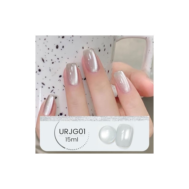 UR SUGAR Cat Magnetic Eye UV Gel Nagellack, 15ML Cateye Magnet Silber Jelly Schellack Glitzer, Gel Nail Polish Silver Holografischer Katzenaugen für Nagelkunst Maniküre Salon