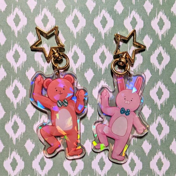 Add a touch of cuteness to your everyday outfits with the Uramichi Onii-san Acrylic Charms – perfect for fans of the popular anime series. Each pack contains one double-sided 2.5" charm featuring either Usahara or Kumatani, made from durable and lightweight acrylic material.