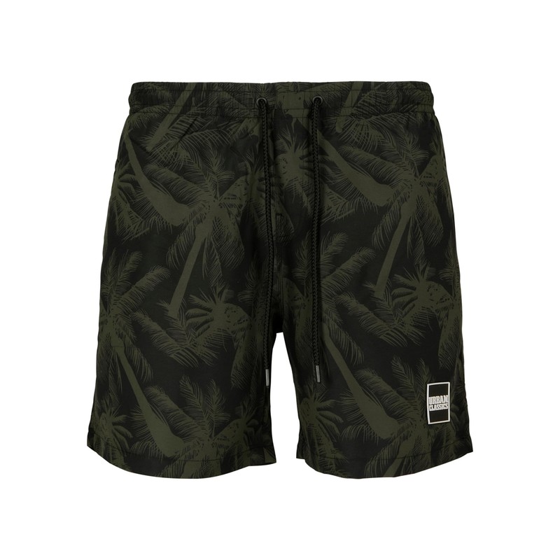 Urban Classics AOP Men's Swimming Trunks Pattern Swim Shorts for Men Available in Many Variations, Sizes XS - 6XL, Multicolour (palm/olive 01692), m