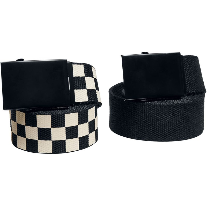 Urban Classics Check and Solid Canvas Belt Pack of 2, Black/Off-White, Small-Medium