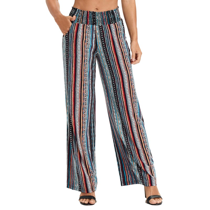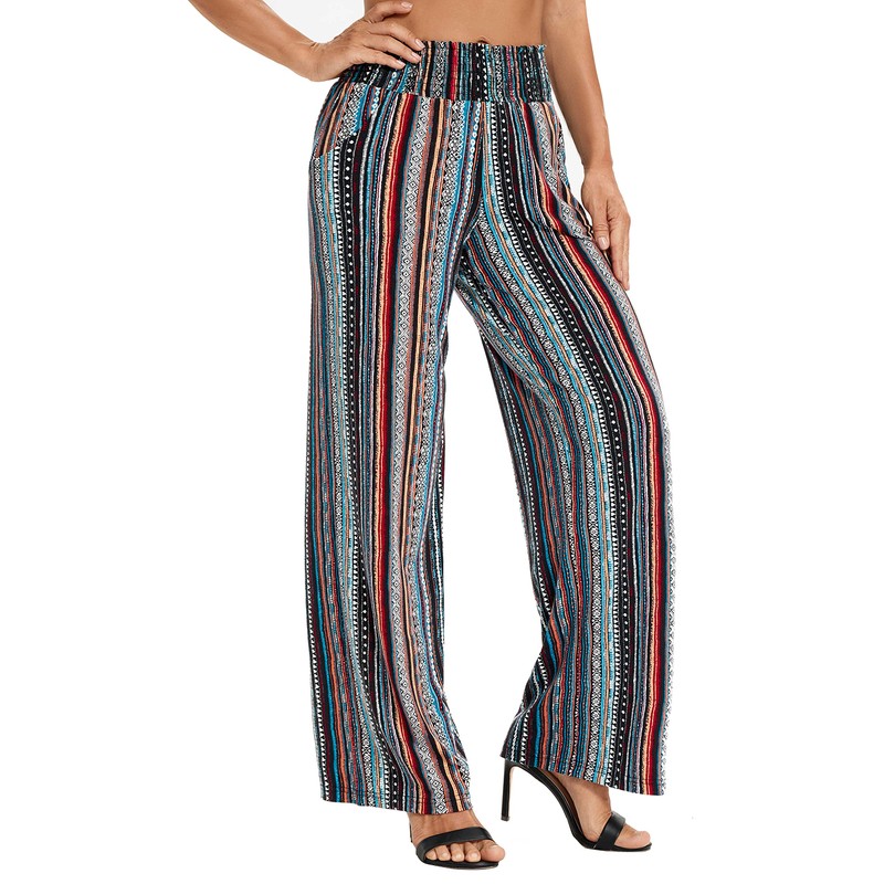 Urban CoCo Women's Boho Palazzo Pants Wide Leg Beach Pants High Waisted Lounge Pants with Pockets(2XL, 14)