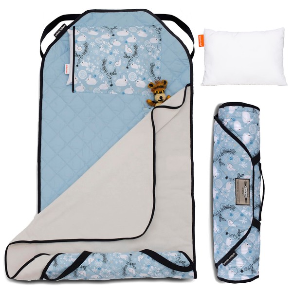 - BUILT FOR PRESCHOOL / DAYCARE NAPPERS — portable all-in-one bedding solution for modern on-the-go parents of children attending preschool or daycare – includes removable pillow, sewn-in blanket, and name tag. Premium Features: Removable pillow is now 100% machine-washable, and blanket has been upgraded to a premium double-sided no-pill fleece