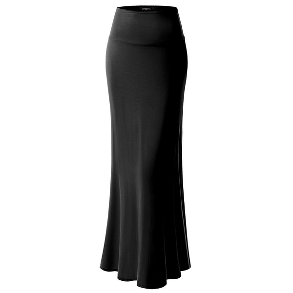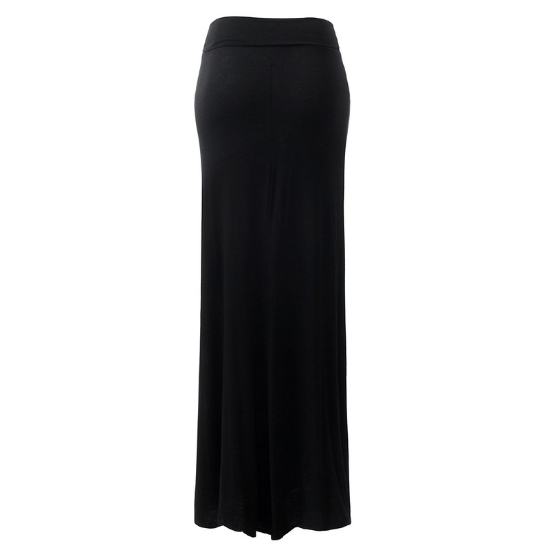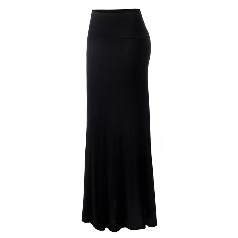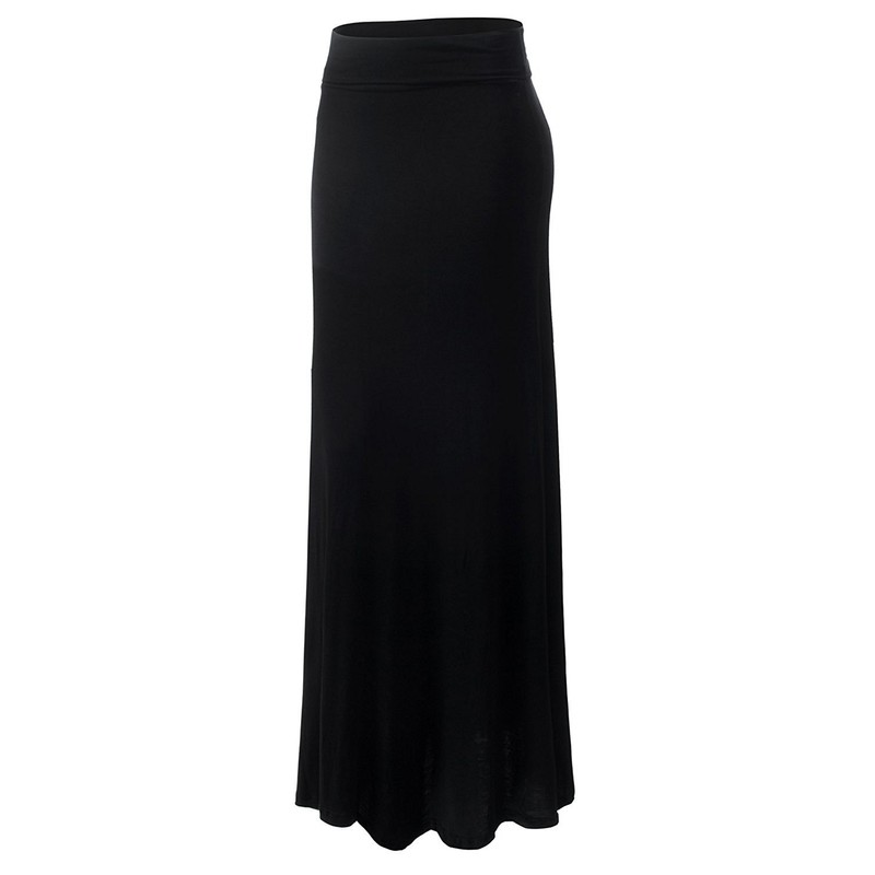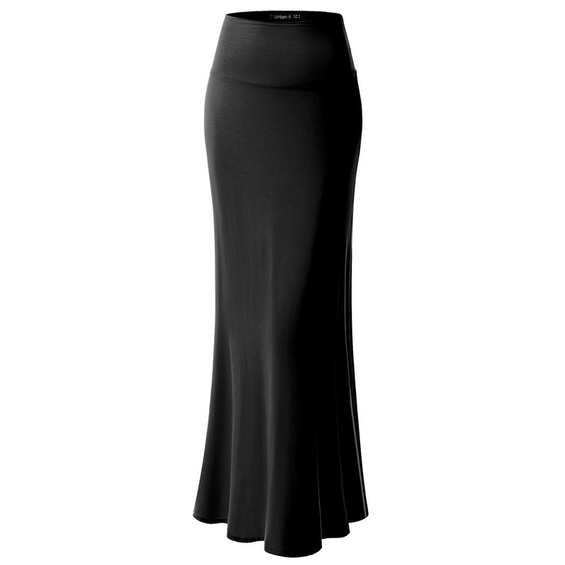 URBAN K Womens Basic Foldable High Waist Maxi Skirt Black