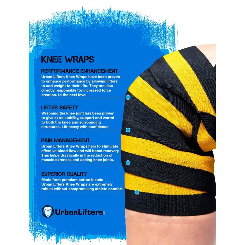 - ✅ Schmerzlinderung - Die Kniebandagen von Urban Lifters bieten mehr Sicherheit für die Heber. Durch die Bandagen werden alle wichtigen Strukturen während des Hebens an ihrem Platz gehalten. Sie bieten ausgezeichnete Kompression und Unterstützung. So können Sie öfter und mit mehr Selbstvertrauen heben.